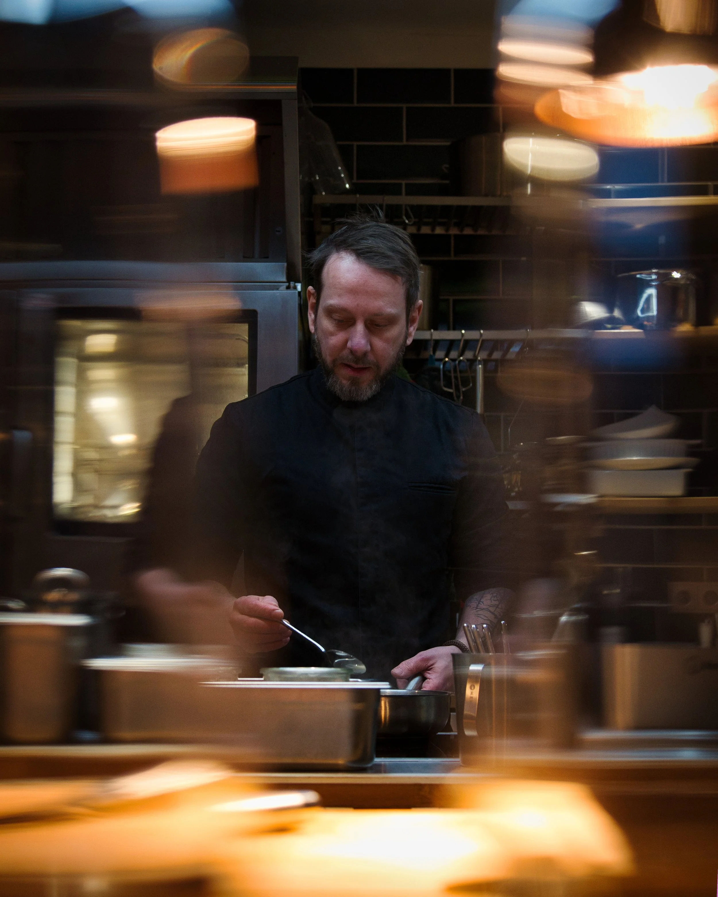 Gekocht wird nach Saison, mit einfachen Mitteln und punktuell über offenem Feuer, dort wo es Struktur und Tiefe gibt. Das Menü bewegt sich von kalt zu warm, von weich zu angeröstet und endet bei Milch und Honig.